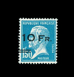 2431 nh Yvert #69 imageYvert #69, 1932 30c Green precancel, an incredibly well centered and margined mint single of this rarest of all the modern precancels, the few existing examples of this stamp are known for their poor centering making this all the more an outstanding example, in addition it is wonderfully fresh with sumptuous bright color on pristine white paper, plus clean original gum that has never been hinged, extremely fine; one of the finest, if not the finest, example known of this rarity; signed Roumet and one other, and accompanied by 1999 Roumet certificate noting the exceptional centering and describing the stamp as "superb". (Image) Euro €7,350