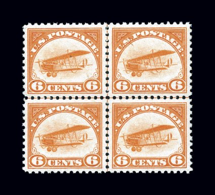 758 ogPB C1 image#C1, 6c Orange, an especially attractive full top margin arrow and plate no. 9155 block of six, extraordinarily well centered throughout, bright vibrant color, o.g., lightly hinged, extremely fine. (Image) $725.00
