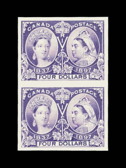 758 P Unitrade #50P-65P imageUnitrade #50P-65P, 1c-$5.00 Jubilees, plate proofs on card, highly select quality matched set of vertical pairs, being most appropriate for the horizontal format of the design, lavish margins, brilliant strong colors, plus the card is also pristine having never been mounted, extremely fine; gem sets are quite rare with as few as only 400 known of the $1.00 value. (imagea) (Image) Unitrade C$10,700.00