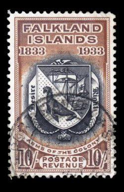 1174 c 65 image#65, 1933 1/2p Centenary, tied to cover to the Cayman Islands by "Fox Bay/Falkland Islands/MR 22 34" c.d.s. with index letter "C", charged postage due with 1/2p Green and two 1/4p Centenary regular issues of the Cayman Islands applied for the due charge of 1p, tied by "Georgetown/Cayman Islands/JU 2 1934" c.d.s., very fine and interesting two-country franking (S.G. #127). (Image) Est. 150-200