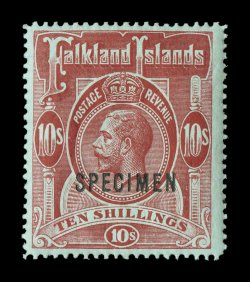 3121 ogS S.G. #100s-101s imageS.G. #100s-01s, 1923 10/- and £1 King George V, with overprinted "Specimen" cplt., strong colors, o.g., fine-very fine (Scott #87S-88S). (Image) £500