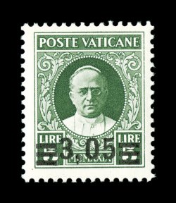 1885 og Q5 image#Q5, 1942 20c Parcel post, with "France Libre/F.N.F.L." overprint, position 12, especially well centered mint single, bright with attractive rich colors, o.g., very lightly hinged, very fine and exceedingly choice; only 240 stamps issued; 1997 APS certificate (Ceres #CP5; €1,250). (Image) $875.00