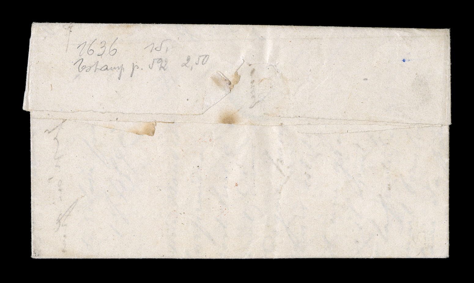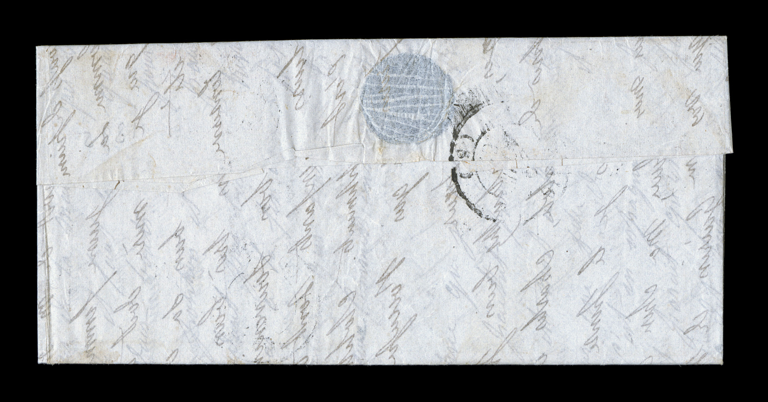 23 c 1854 Saint Francois unpaid stampless cover to France, extraordinarily rare black St. FrancoisGuadeloupe25 Sep 1854 double-circle c.d.s. on folded cover (missing side flaps) from