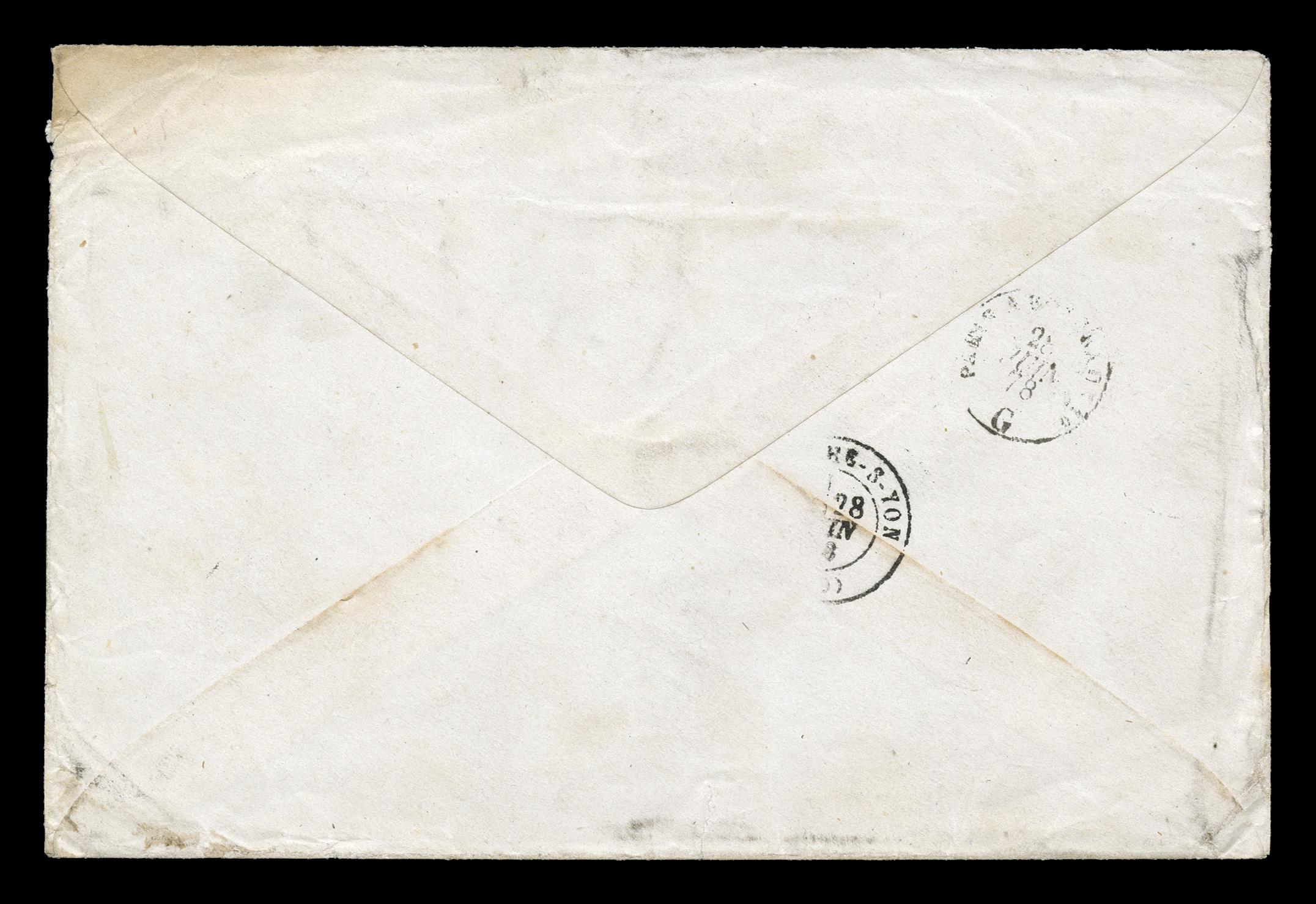 Pointe-a-Pitre c.d.s., posted through the British Agency with rare later GuadFrench Colonies Yvert #4, 5, 1859-65 20c Blue and 40c Vermilion, four-margin singles tied to 1868 folded cover to the United States by black lozenge cancel, indistinct Pointe-a-Pitre c.d.s., posted through the British Agency with rare later "Guadaloupe/Paid/NO 10 68" c.d.s., "4" pence British rate marked in red crayon, small red "Guadaloupe/No 10 68" c.d.s. and black St. Thomas British c.d.s. transit on reverse, posted to Norfolk, Virginia with black "U.S. Steamship/10/Nov. 25" entry c.d.s., edge wear with flaws to the backflap and light soiling, a fine and rare British Agency cover to the United States; ex-Levett. (imagea) (Image) Est. $750-1,000