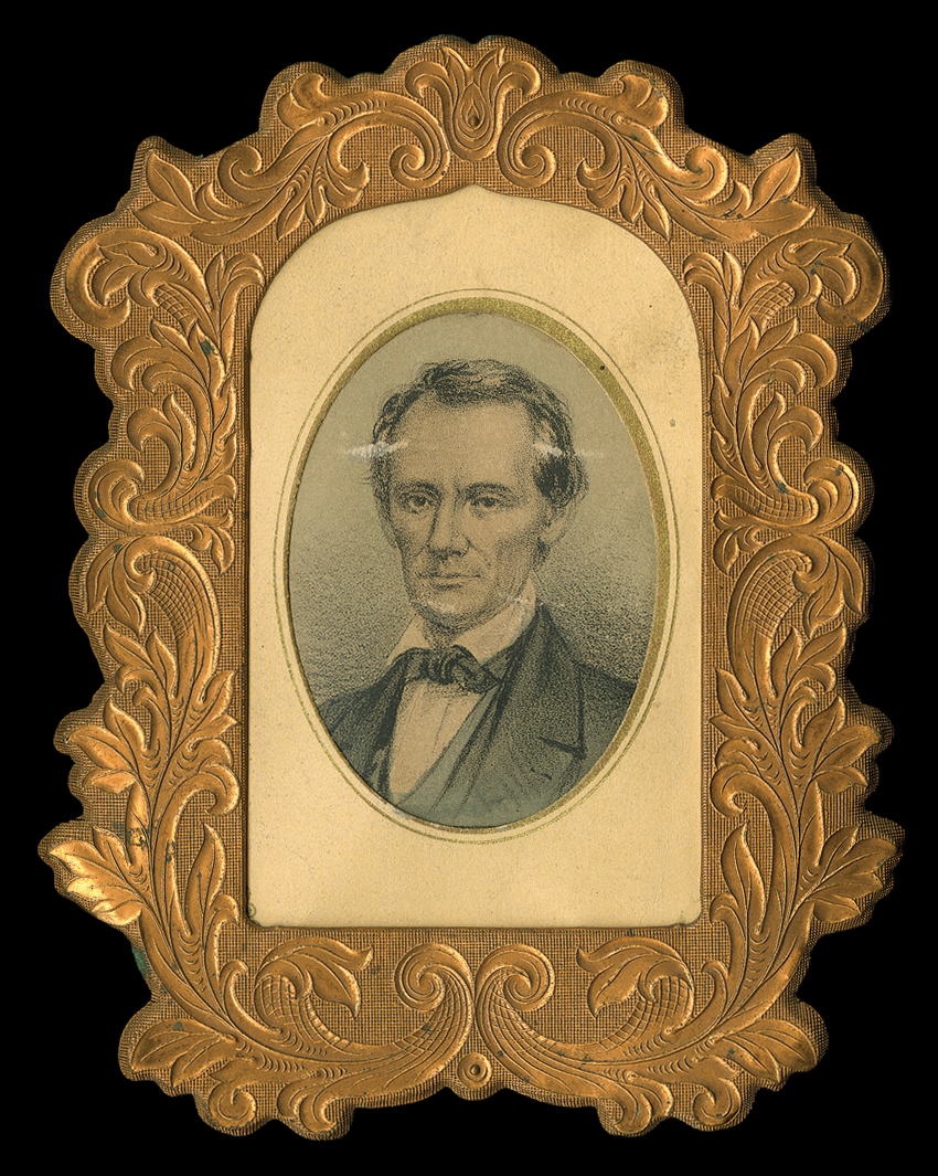 by E.A. Anthony of New York. With two-cent Andrew Jackson postag[Lincoln, Abraham] Choice date carte-de-visite Photograph by Matthew B. Brady, a three-quarter-length pose of Abraham Lincoln standing with his left arm behind his back. Printed by E.A. Anthony of New York. With two-cent Andrew Jackson postage stamp on verso (Scott type 73), treated as a revenue stamp and canceled on April 29, 1865, two weeks after his assassination, while his funeral train was crossing the state of Ohio. Spotting of photographic surface, otherwise G/VG. With tinted carte-de-visite size Lithograph of a young, beardless Lincoln, printed by Story Brothers of Peoria, IL. With a two-cent George Washington revenue stamp (R-15) on verso, cancelled but undated. However, these stamps were only used in the years 1864-66, making it highly likely that this was a memento after the president's murder. In an elaborate gold metal frame. Creasing, apparently from when it was fitted into the frame, and some scrapes on recto affecting image, otherwise Good. With great election content ALS "C. Delano," 1 page, 4to, Mt. Vernon, Ohio, August 24, 2864. To state Treasurer G. Volney Dorsey and James Williams of Columbus, he writes, "This will be handed you by Capt. George Hollister whose name I sent you yesterday as the proper person to carry votes and blanks &c to our soldiers. Capt. Hollister...energetic discreet and loyal. Give him all needful information and let him work for this business is very important..." Some smudging, otherwise VG. (imagea) (imageb) (Image) Est. $300-400